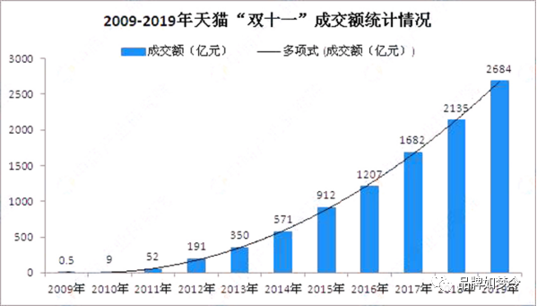 “双十一”,是电商系造节神话的标志。网上有张统计表,从2009-2019年,天猫“双十一”成交额达到2684亿,年复合增长率达到25%以上。
